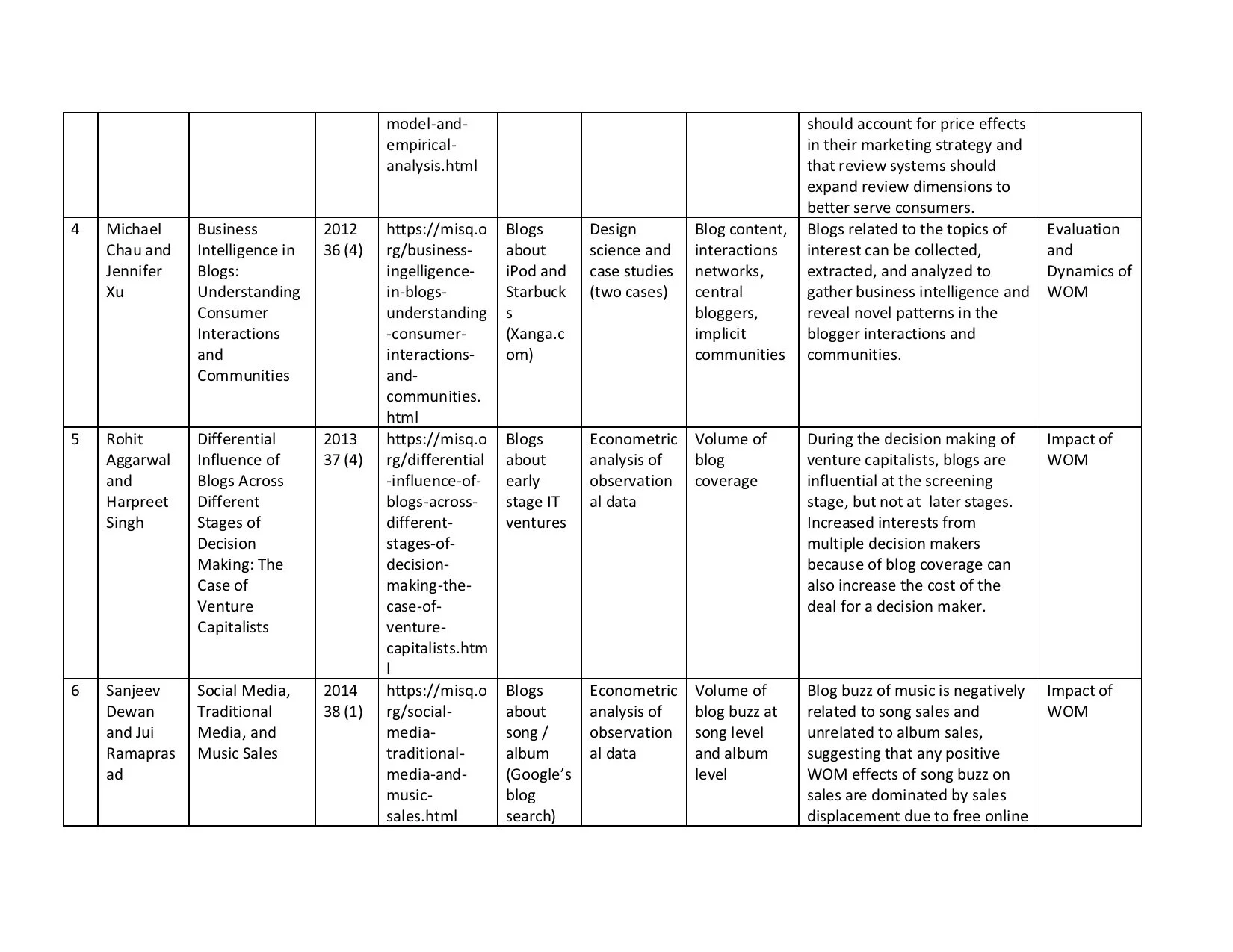 1 Table: MIS Quarterly Papers on Online Word-of-mouth